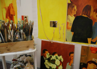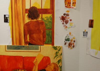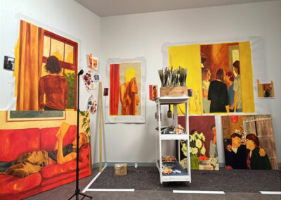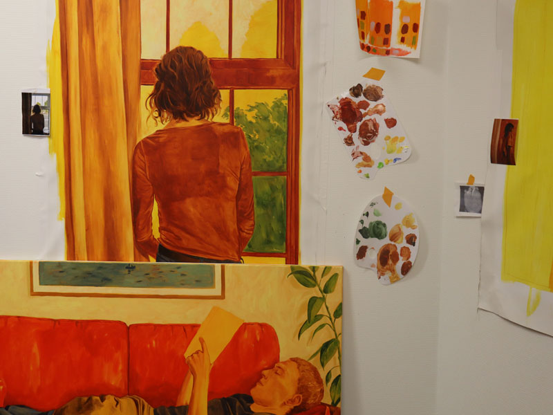 Maurane Leder, diplômée de L’ISDAT en 2022, est invitée pour une résidence de recherche d’un mois. Il lui est proposé un contexte propice à la fois au mûrissement de ses recherches et à la production de ses peintures. Elle transforme ainsi le logement de résidence en atelier de peinture et plusieurs œuvres y sont poursuivies : certaines sont entamées, d’autres approfondies, certaines, enfin, achevées. Et, toujours, émane de la toile une lumière particulière, celle que l’artiste travaille au cœur de sa démarche, et apparaissent des scènes intimes pour lesquelles jamais les regardeurs et les regardeuses ne sont voyeurs. Cette invitation se double d’une autre, consistant à lui proposer de participer à l’exposition des 20 ans de la Maison Salvan.